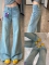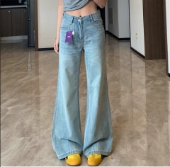水洗浅蓝微喇牛仔裤女2025春秋季新款宽松显瘦阔腿不贴腿喇叭裤子