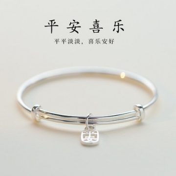 99平安吊坠手镯女纯银饰年轻款素圈足银镯子ins小众设计高级手链